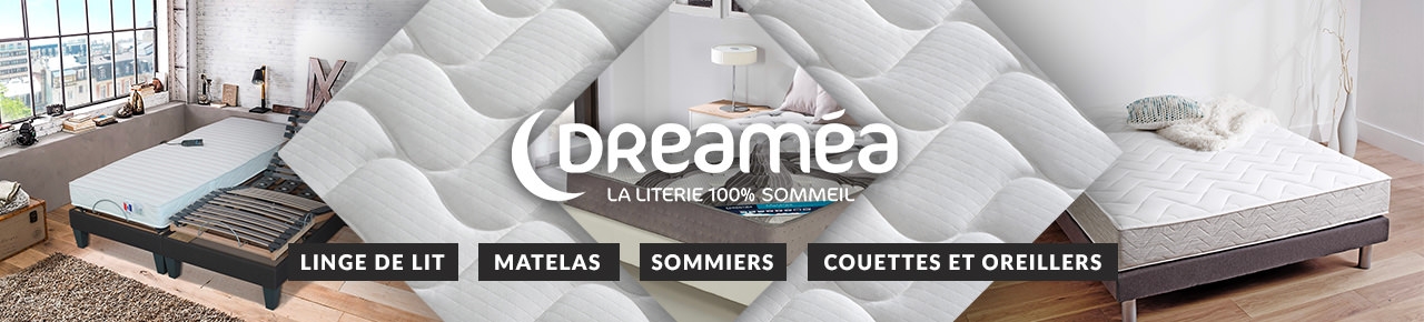 Parce qu'il n'y a pas de sommeil réparateur sans bonne literie, Dreamea équipe confortablement les espaces nuit. Du matelas à la couette, la marque française propose des articles accessibles répondant à chaque besoin au plus juste rapport qualité/prix. Un grand choix de sommiers et de matelas à petits prix Sommier tapissier ou matelas à ressorts, Dreamea s'adapte à la sensibilité de ses utilisateurs pour optimiser leur repos. Des dimensions aux matières variables, on choisit un matelas thermorégulateur au soutien tonique afin de soulager les maux de dos ou un modèle à mémoire de forme pour une relaxation absolue. Si avec des jeux de pieds, on personnalise habilement sa literie, on protège tout autant son couchage grâce aux sur-matelas. Oreillers et linge de lit déco pour tous En solo, en duo, pour les parents comme pour les enfants, on capitalise sur la décoration avec des parures de lit en promo. Housse de couette unie ou imprimée, à chacun son univers ! Pour des nuits encore plus douces, Dreamea décline une large gamme de coussins et de traversins. Carré, rectangulaire, souple ou ferme, le choix d'un oreiller hypoallergénique ou bien anti-acariens conviendra tout particulièrement aux sujets sensibles.
