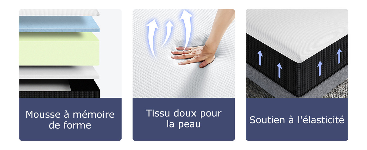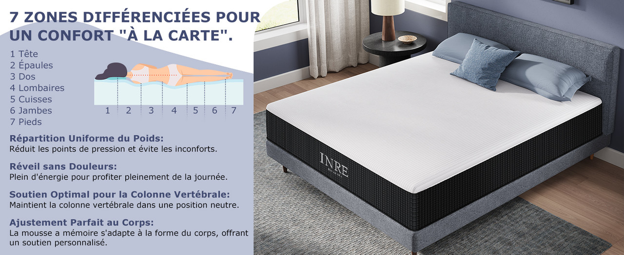 Ce matelas adopte une conception à plusieurs couches en mousse de haute qualité. La couche supérieure en mousse à mémoire de forme haute densité s’adapte à la température et à la pression de votre corps, répartissant uniformément le poids et réduisant les points de pression pour garantir un soutien optimal.
