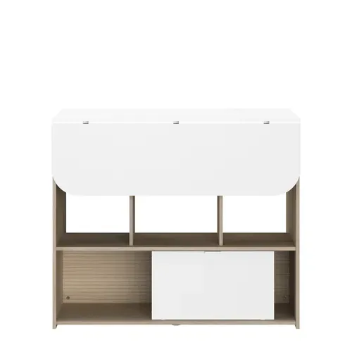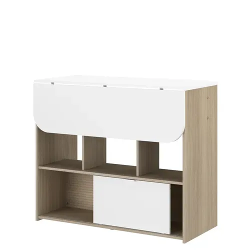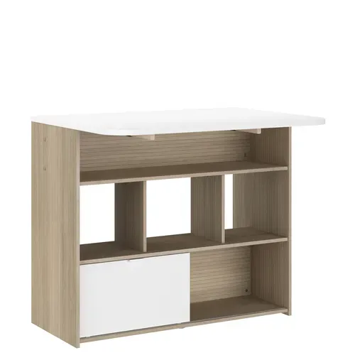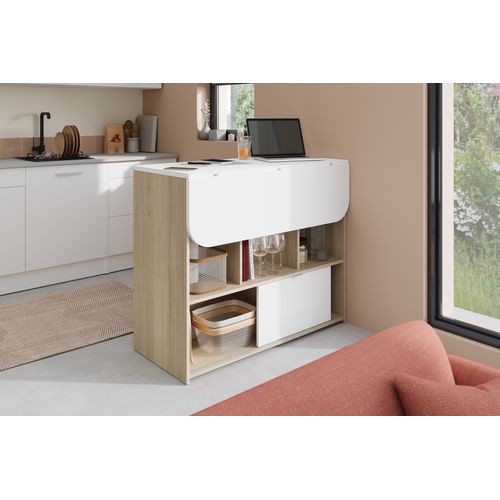 Le Mange debout + Allonge LUNDGE Blanc / Imitation chêne se distingue par son design moderne et épuré, parfait pour une cuisine ou un salon contemporain.