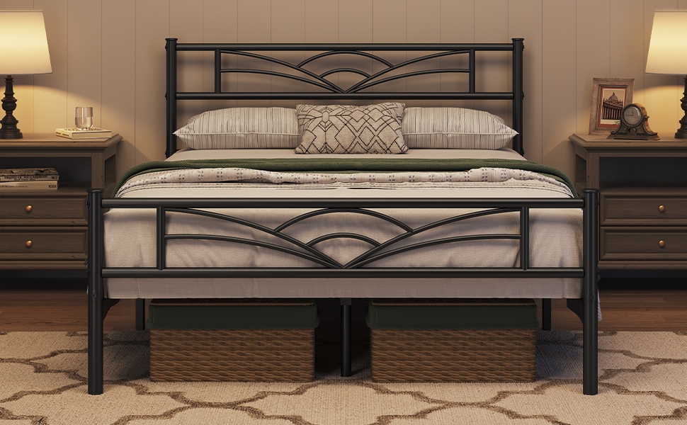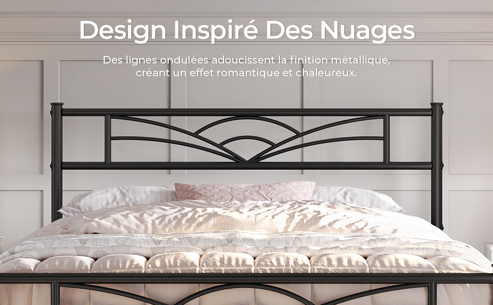 1. Design inspirés des nuages : S'inspirant des nuages dans le ciel, ce cadre de lit en métal présente des vagues uniques sur la tête de lit, apportant un tempérament artistique et du caractère à votre espace de sommeil.