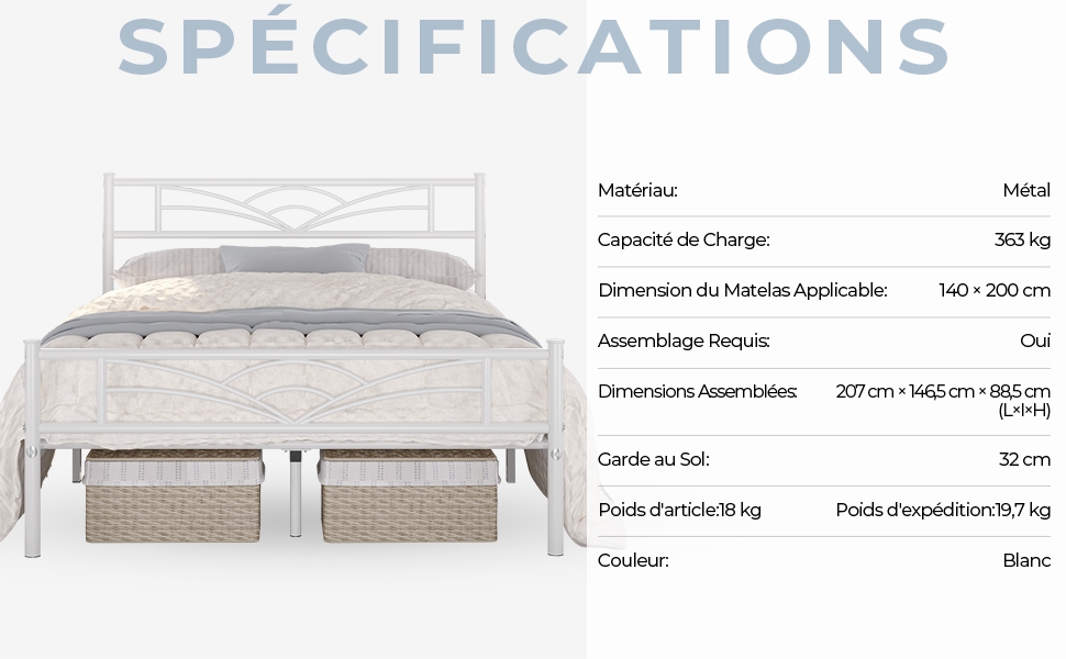 Taille de matela adaptée : 140 cm × 200 cm