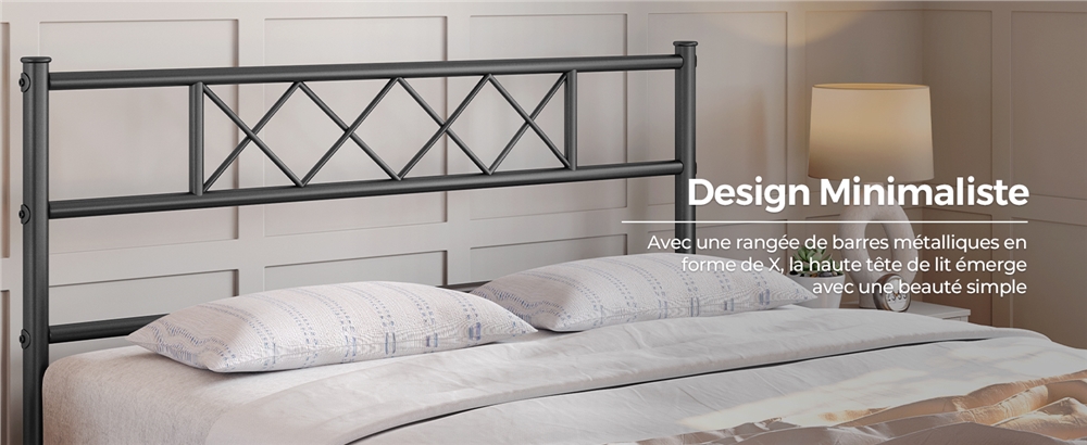 2. Design minimaliste : Lignes épurées, finition mate, ces éléments soigneux donnent une touche élégante à ce cadre de lit. Les motifs croisés dans la tête et le bout du lit rendent l’ensemble du cadre plus stylé.