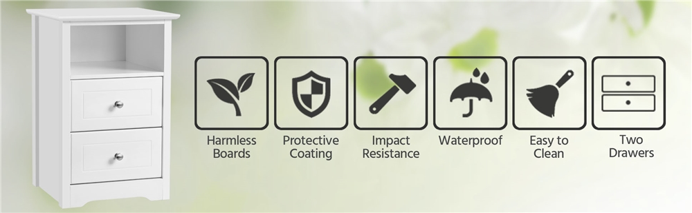 1. Structure solide : Grande capacité de charge, 35 kg pour le dessus, 10 kg pour le casier, 6 kg pour chaque tiroir. Fabriqué en panneaux MDF classés E1, solides pour satisfaire les besoins de rangement quotidien.
