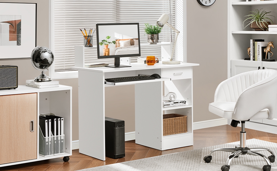 3. Grand espace de rangement: Cette table de travail possède un large espace pour satisfaire vos besoins de travail à domicile. Vous pouvez organiser des objets tels que moniteur, souris, livres, magazines, fichiers, hautparleur, etc