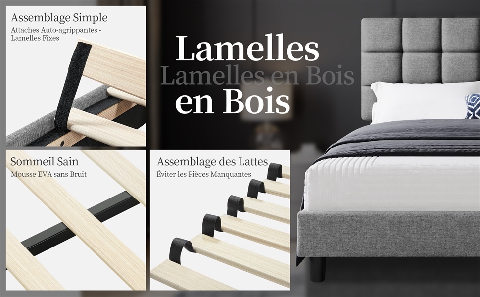 5. ✨【Réglable en hauteur】 Ce lit en bois vous offre la liberté de choisir la hauteur de votre tête de lit capitonnée. Optez pour une hauteur de 106 cm ou de 116 cm. Ainsi, vous aurez votre propre cocon de douceur, pour vous détendre, lire ou rêver.