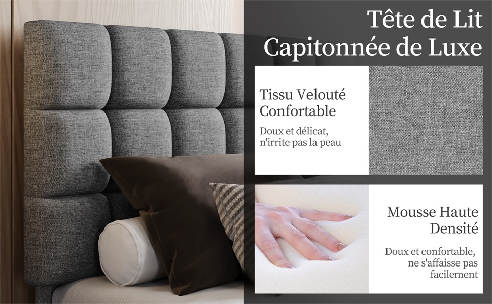Découvrez l'élégance moderne dans votre chambre avec notre cadre de lit rembourré, muni d'une tête de lit carrée somptueusement capitonnée.