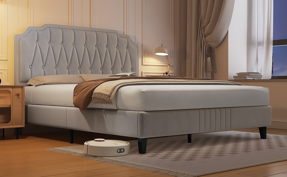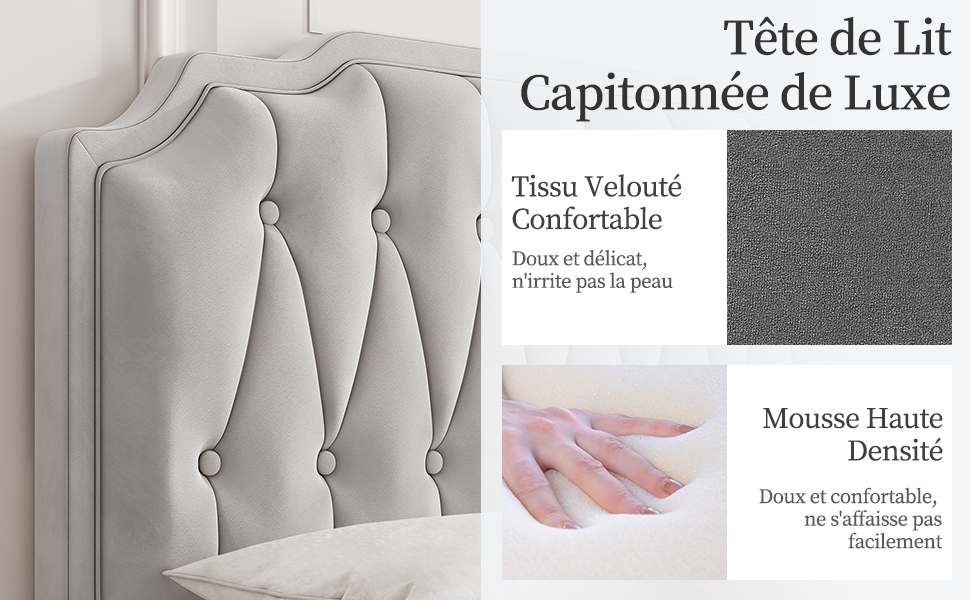 5. 【Design velours】Enveloppé de velours doux au toucher, le lit capitonné apporte un sentiment agréable, invitant de luxe et de beauté.