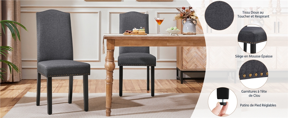 Constitué d'un cadre en bois massif, d'un revêtement en tissu respirant, d'une assise en mousse souple et d'un haut dossier incurvé, cet ensemble de chaises de salle à manger s'avère solide, confortable et résistant à l'usure. Coup de cœur pour son aspect élégant et moderne. Un set classique en tissu effet lin facile à assortir. Il peut s'imposer dans la cuisine, le salon, la salle de réception, etc. Procurez ce modèle cossu à votre décoration intérieure.