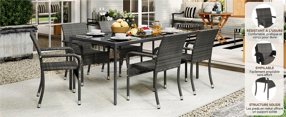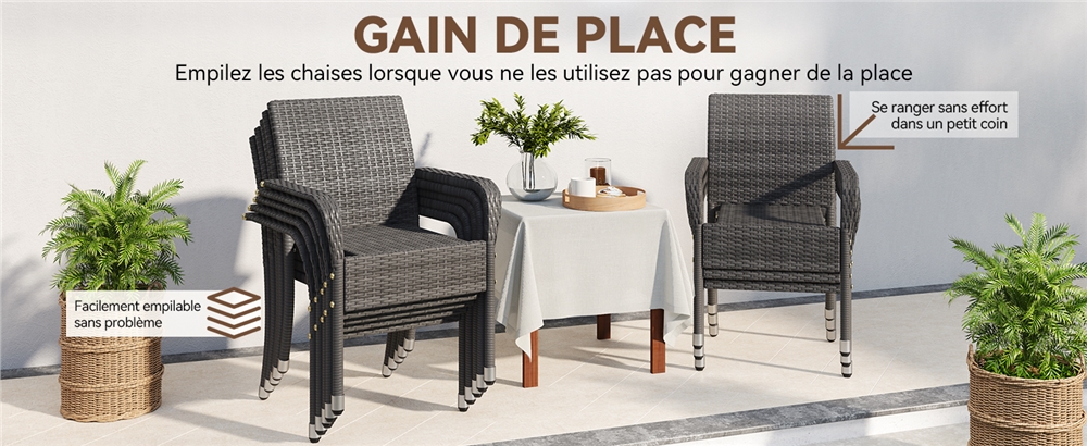 Design empilable pratique : Grâce à un design malin avec des côtés ouverts, ces fauteuils de jardin peuvent être facilement empilés pour un rangement peu encombrant. Une solution fonctionnelle pour optimiser votre espace lorsqu'ils ne sont pas utilisés
