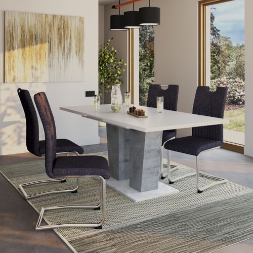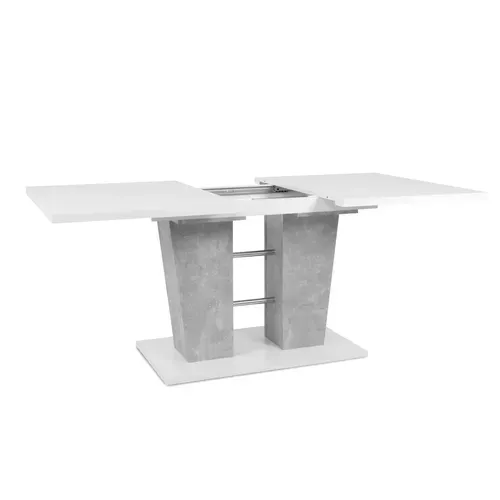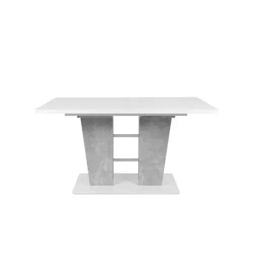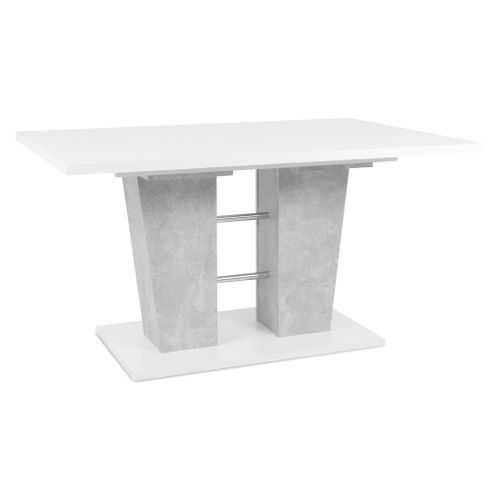 Avec ses deux pieds larges imitation béton, séparés par des tubes en métal, et son plateau blanc, cette table extensible attire irrémédiablement les regards. Elle fera sensation dans un intérieur de style contemporain. Idéale pour dynamiser votre pièce, cette table est disponible à un très bon rapport qualité/prix.