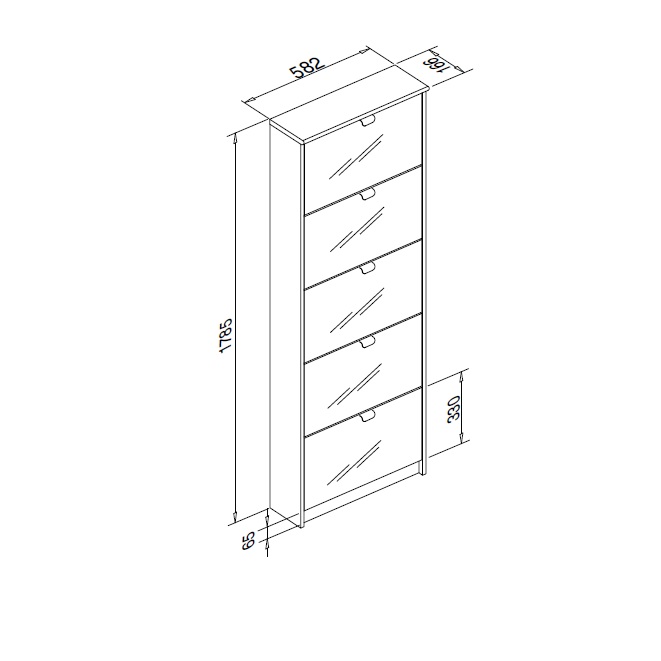 Les cinq abattants permettent de ranger jusqu’à 20 paires de chaussures, pour une organisation optimale au quotidien.