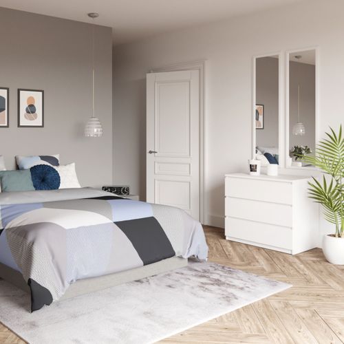Cette commode blanc laqué est proposée dans un coloris sobre qui s'associe avec tout style de décoration, mais aussi tout type de mobilier. Pour une harmonie parfaite, mariez-la à des meubles blancs. Réalisée en panneaux de particules mélaminés et laqués, cette commode robuste vous sera utile durant des années.