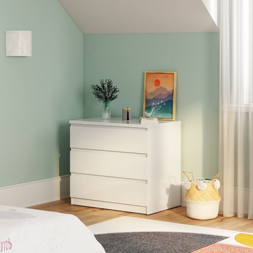 Grâce à sa praticité, cette commode BEST LAK se montre indispensable au quotidien. Idéale pour ranger vos vêtements pliés et vos accessoires, cette commode dispose de trois tiroirs profonds. Vous pourrez ainsi organiser facilement vos affaires. Le plateau supérieur permet lui aussi de disposer des affaires, vous pourrez ainsi placer quelques panières, une lampe ou tout autre accessoire. Peu encombrante, cette commode de L. 77 x H. 70,1 x P. 50 cm convient aussi bien aux grands espaces qu'aux pièces de petite taille. Pour la nettoyer, passez simplement un coup de chiffon sur la surface pour enlever la poussière.