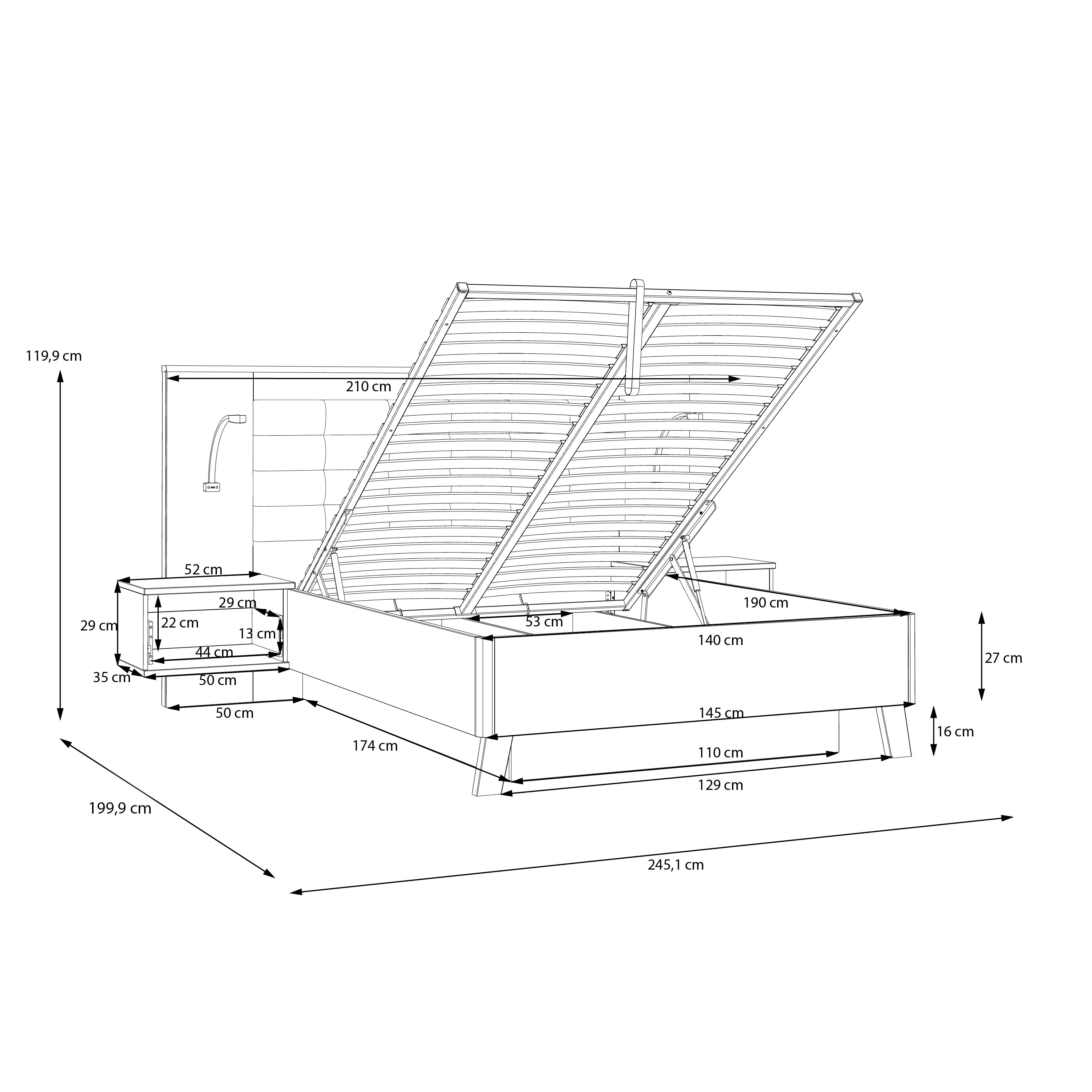 Le coffre de rangement de 647 litres est parfait pour optimiser l'espace dans votre chambre.