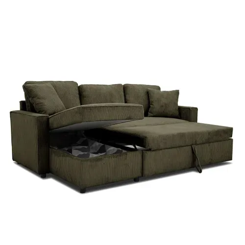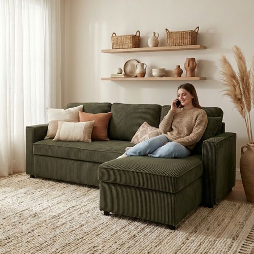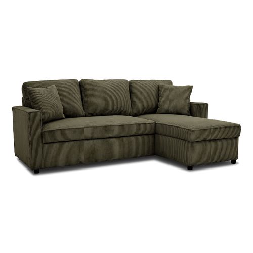 Ce canapé d'angle convertible méridienne réversible OZ velours côtelé kaki est l'alliance parfaite entre design et fonctionnalité.