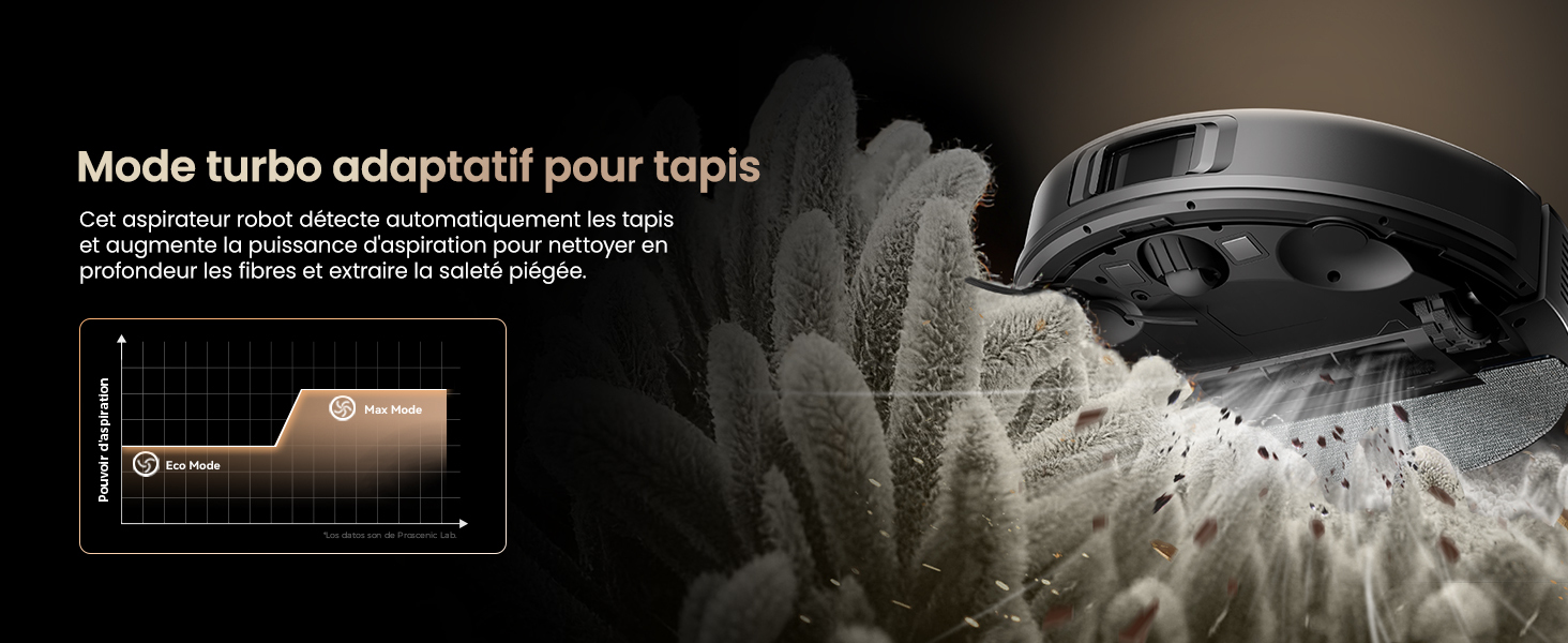Bonjour, oui, le Q20 Plus est parfaitement adapté pour une utilisation sur les tapis ! Il est doté d'une fonction d'augmentation automatique de la puissance spécialement conçue pour les tapis : dès qu'il détecte un tapis, il booste l'aspiration pour un nettoyage en profondeur. De plus, son plateau de lavage se soulève automatiquement pour éviter de mouiller le tapis. Ainsi, vous passez sans effort du sol dur au tapis, sans aucune manipulation !