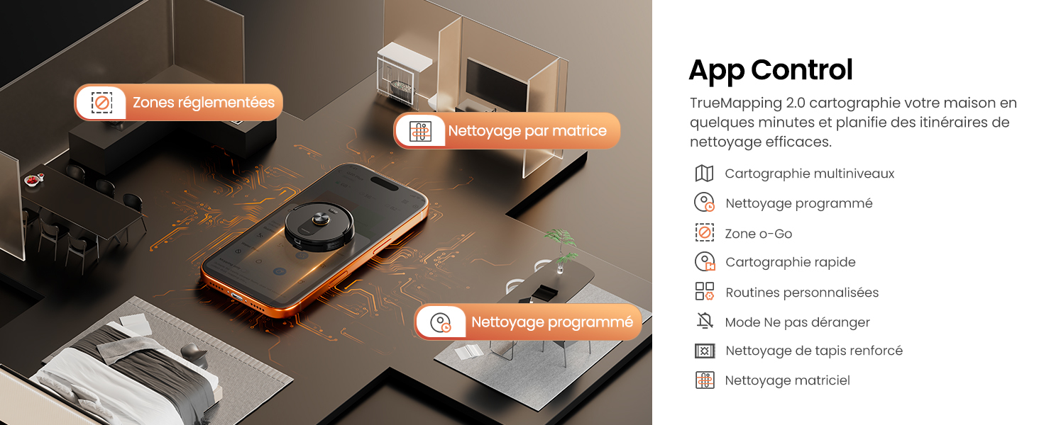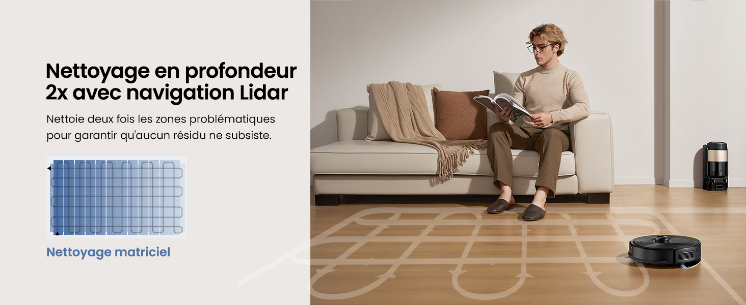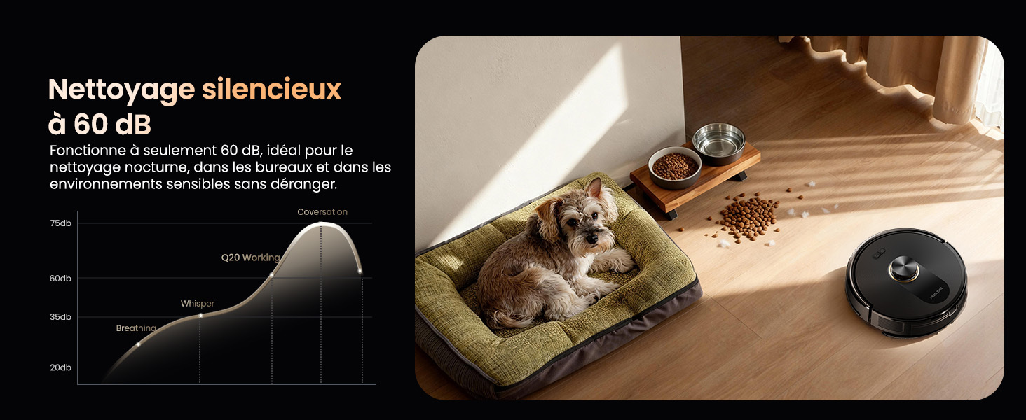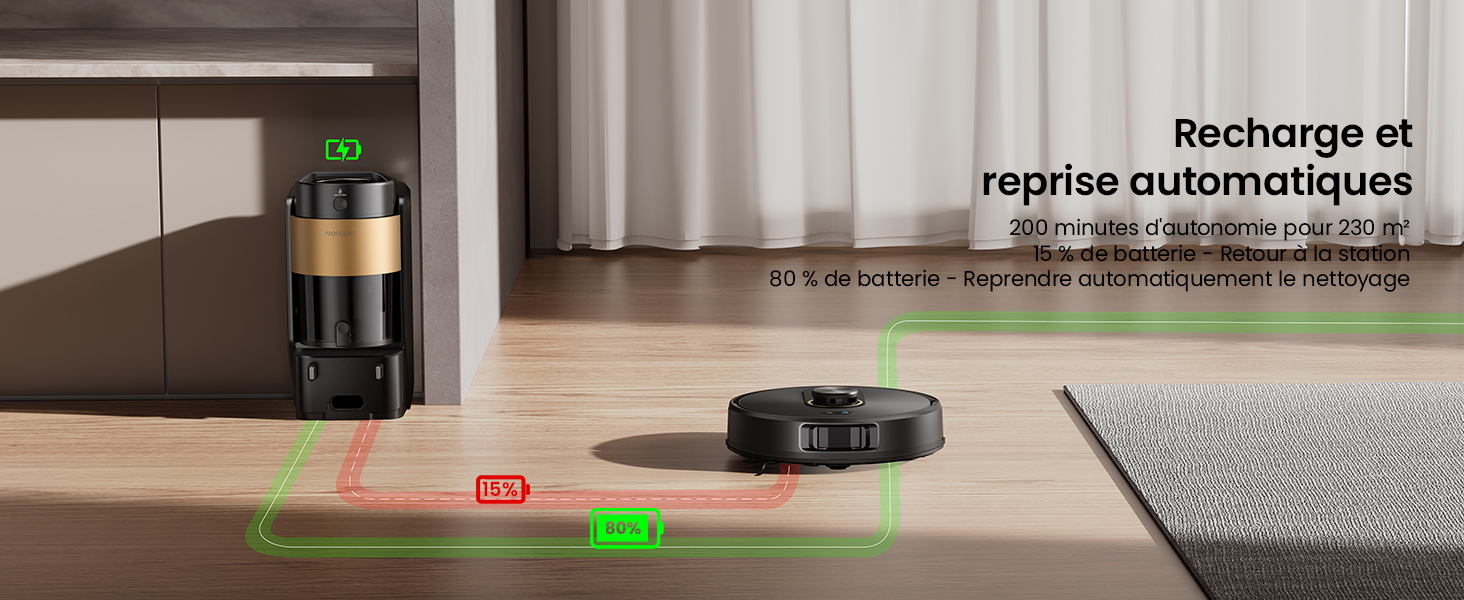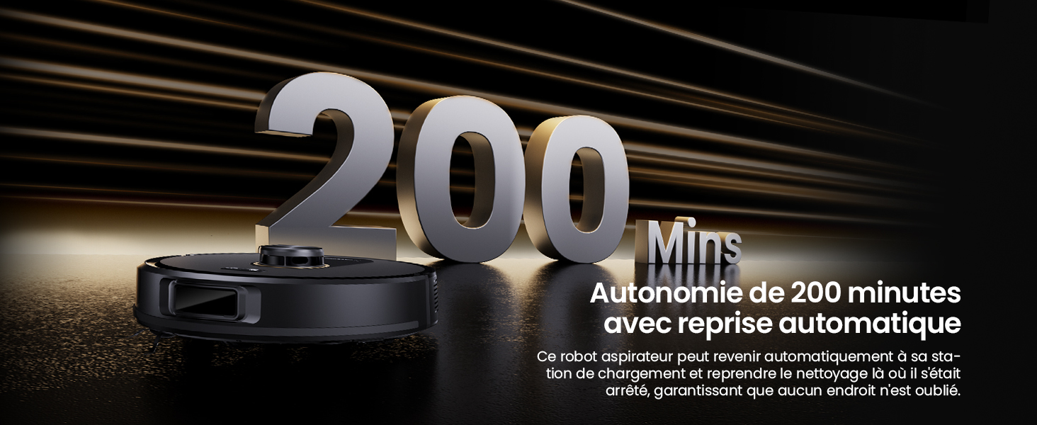3-en-1 & 200 min d'autonomie : aspire, balaie et lave en 1 passage avec 3 niveaux eau/aspir. Recharge et reprend auto.