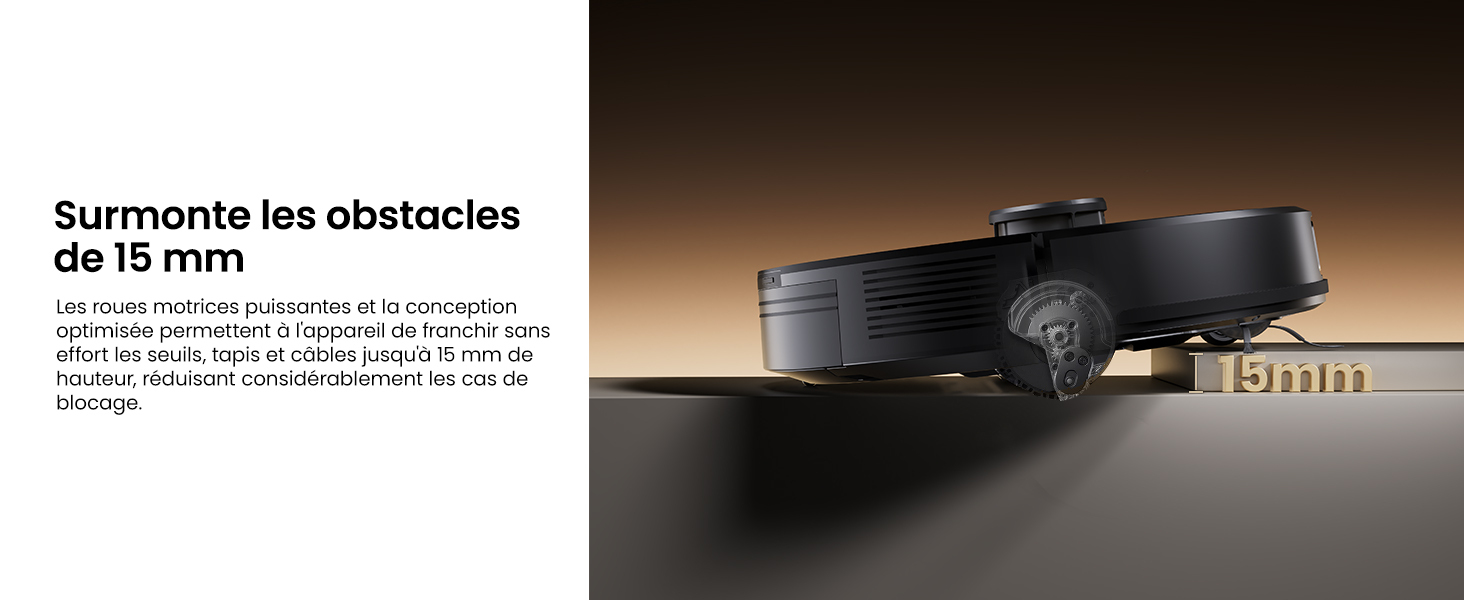 Bonjour, Merci pour votre message, Voici les informations demandées : Dimensions du robot : 30,6 cm (Longueur) × 30,6 cm (Largeur) × 9,8 cm (Hauteur) Dimensions de la station de vidage automatique : 19 cm (Longueur) × 20,2 cm (Largeur) × 37,2 cm (Hauteur) Bien cordialement, L'équipe BUT