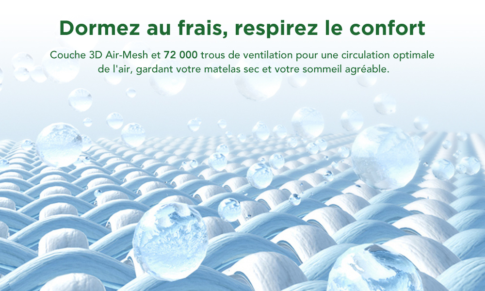 【Haute respirabilité – Fraîcheur et confort】 Équipé d’une couche 3D Air Mesh avec environ 72 000 perforations, le matelas assure une circulation d’air efficace, maintient la surface sèche et procure un environnement de sommeil frais et agréable, réduisant la sensation d’humidité.
