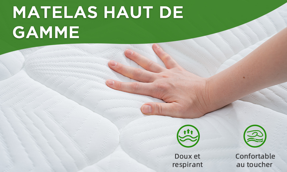 【Certification OEKO-TEX® – Sécurité et respect de la peau】 Le tissu du matelas est certifié OEKO-TEX® Standard 100, garantissant l’absence de substances nocives et convenant aux peaux sensibles, y compris les bébés.