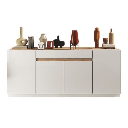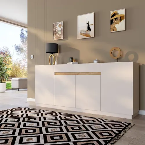 Pratique, ce buffet dispose de spacieux rangements grâce à ses 4 portes et un tiroir, idéal pour garder votre espace de vie organisé et accueillant.