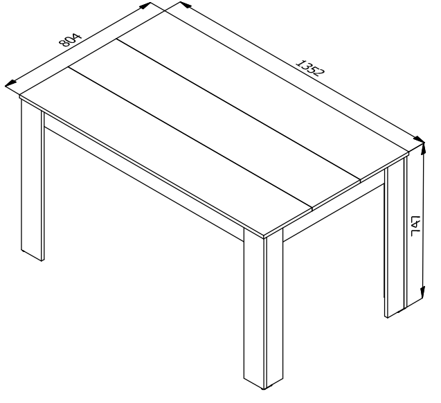 Avec ses dimensions de longueur 135,2 cm, largeur 80,4 cm et hauteur 74,7 cm, elle s'intègre parfaitement dans un espace repas, accueillant jusqu'à six convives confortablement.