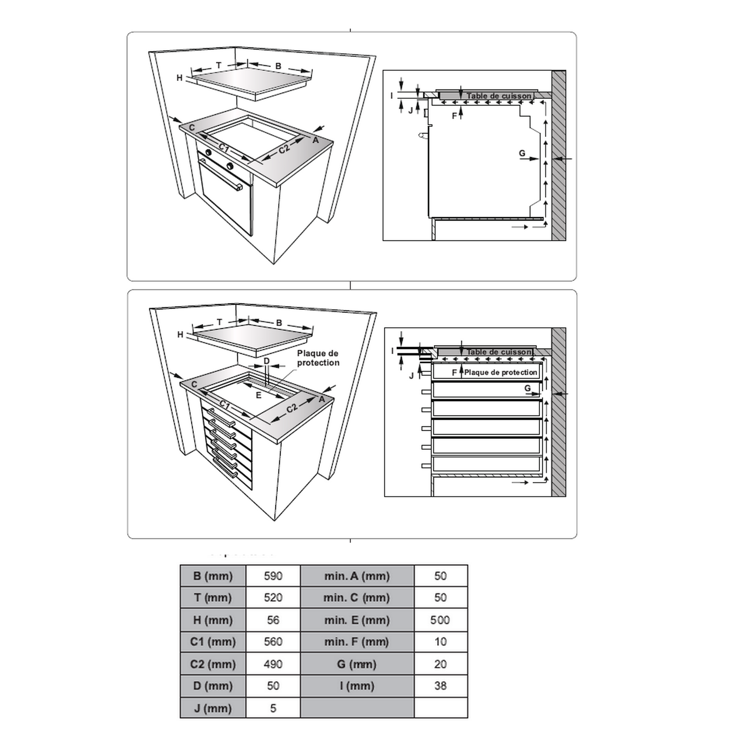 Son design élégant en noir s'intègre facilement dans toute cuisine moderne, avec des dimensions compactes de largeur 59 cm, hauteur 4,1 cm et profondeur 52 cm.