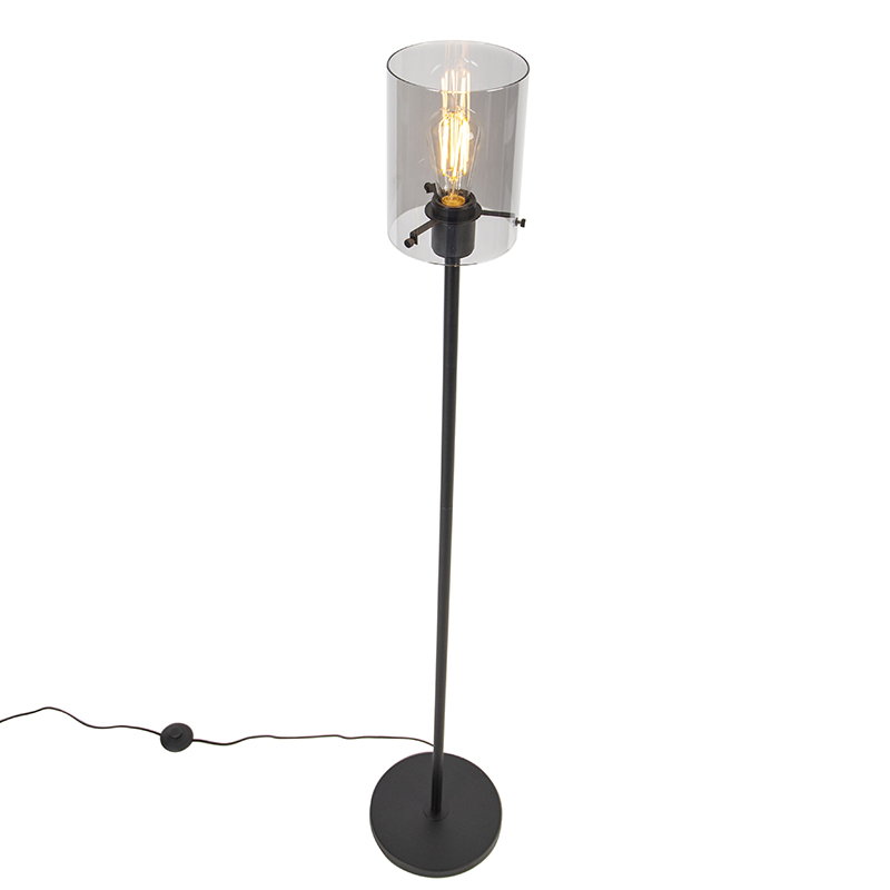 QAZQA Lampadaire Design Noir Avec Verre Fumé - Dôme