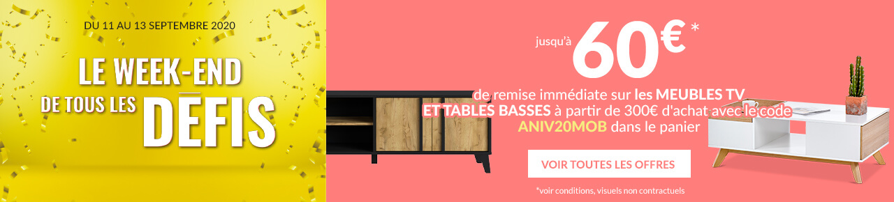 50€ offerts* en bon d’achat pour 500€ d’achats minimum sur les meubles de salon
